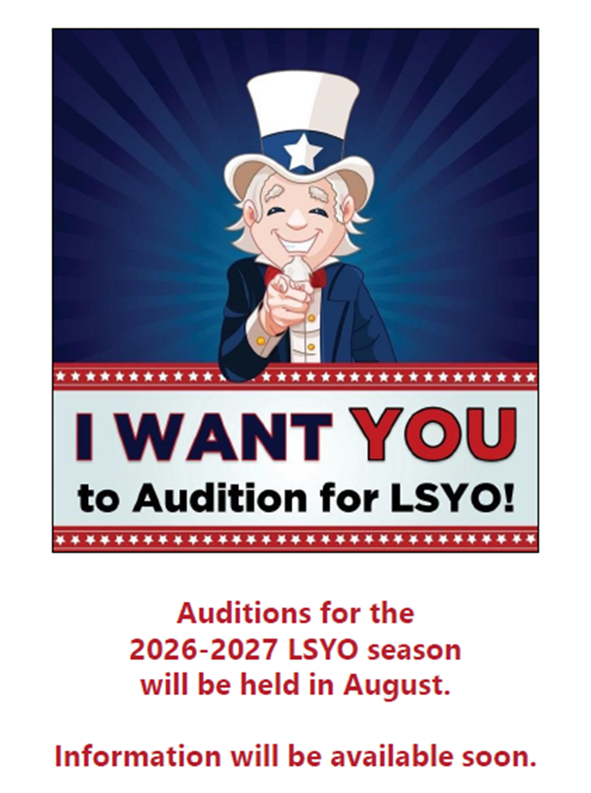 - When all registration materials are received, the LSYO Manager will contact you to schedule the audition.